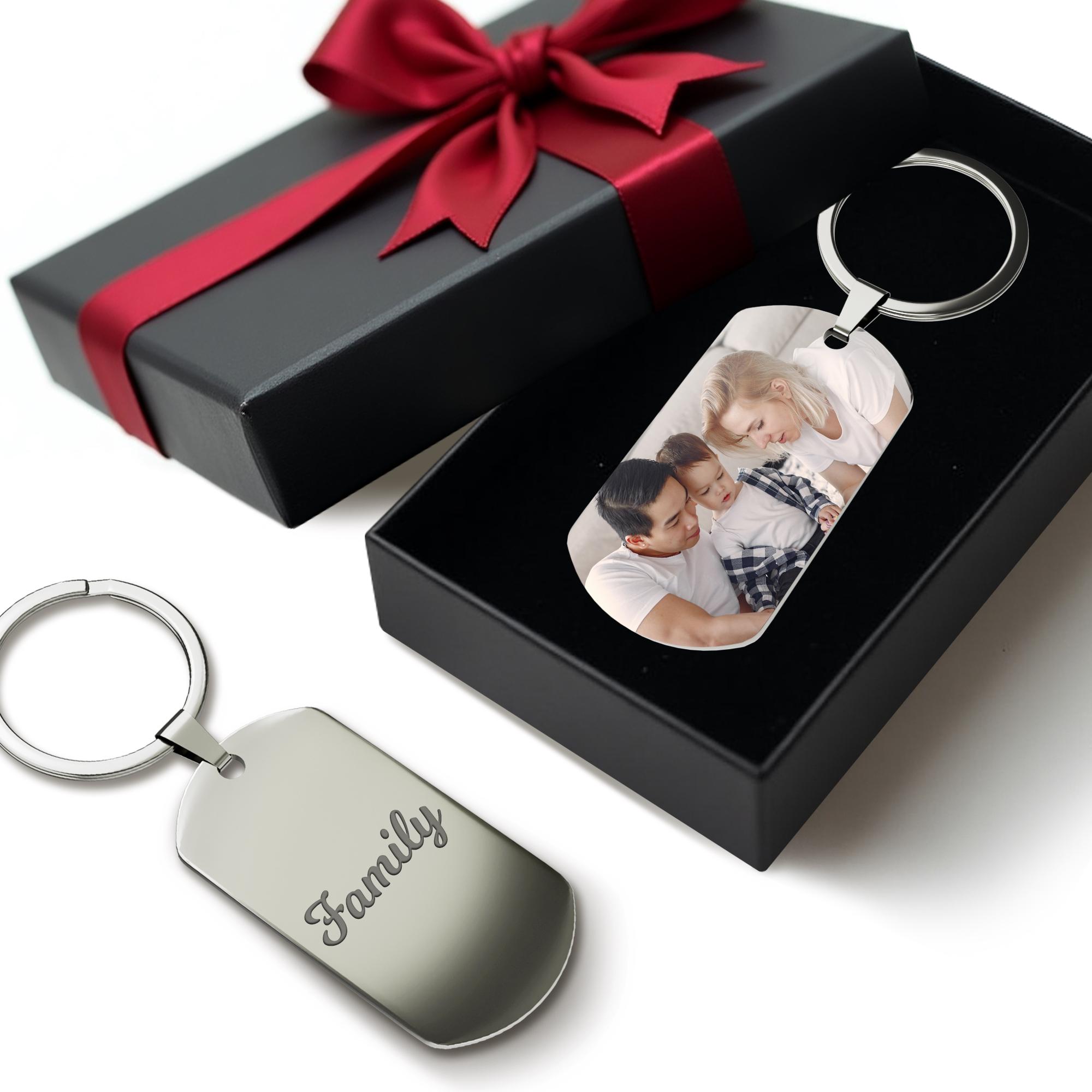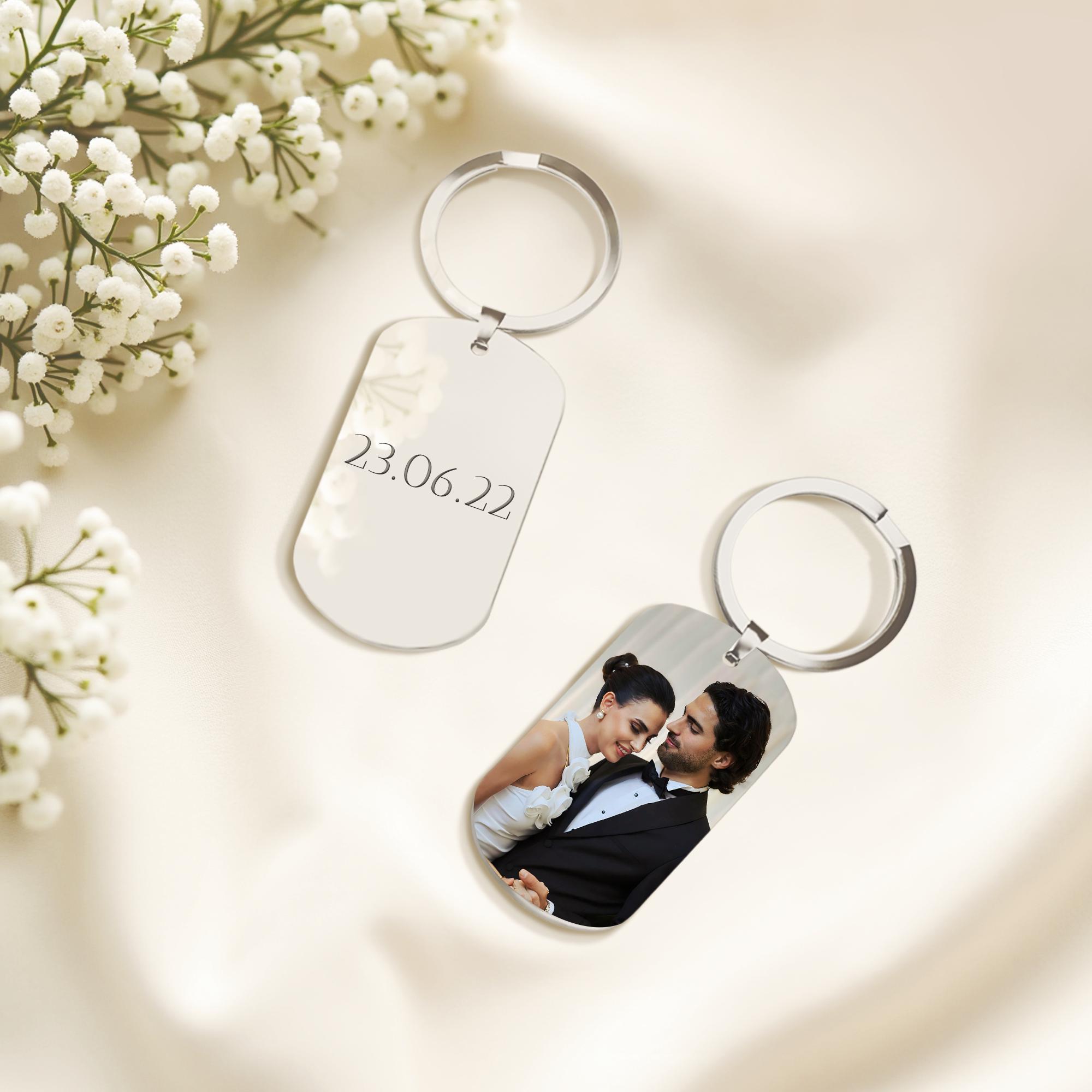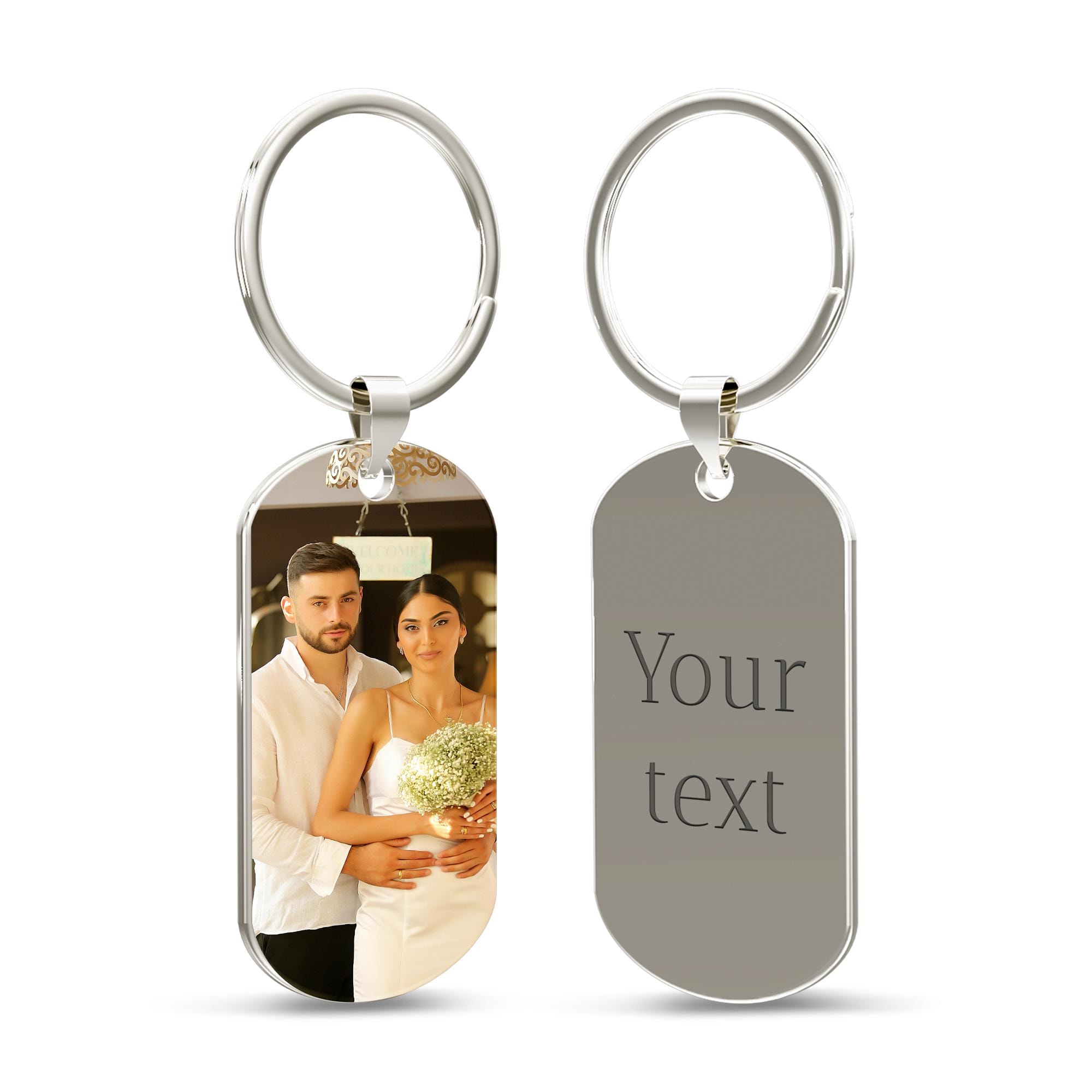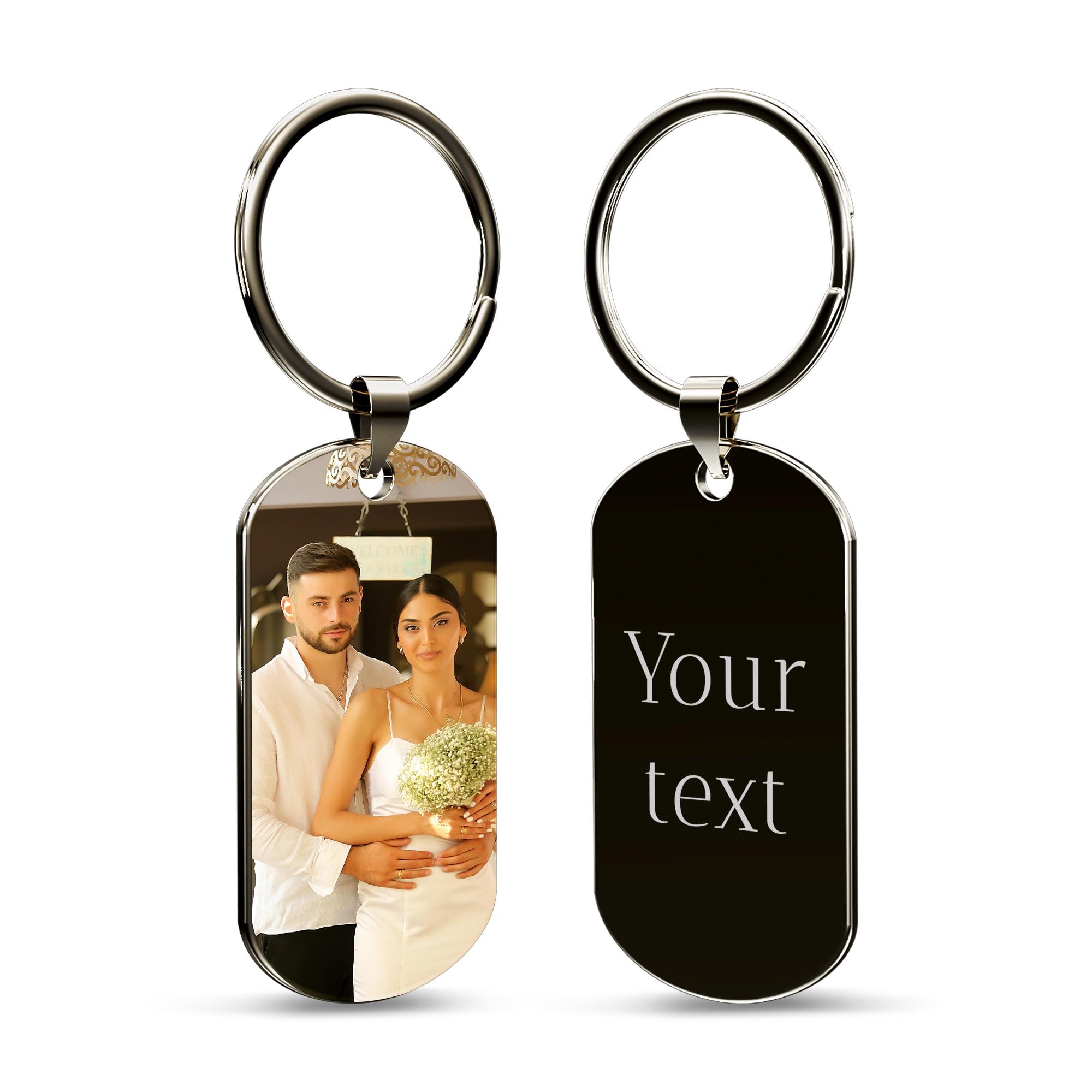 This personalized keychain combines a full-colour photo on the front with a laser-engraved message on the back – a unique way to celebrate love, family, and special moments.