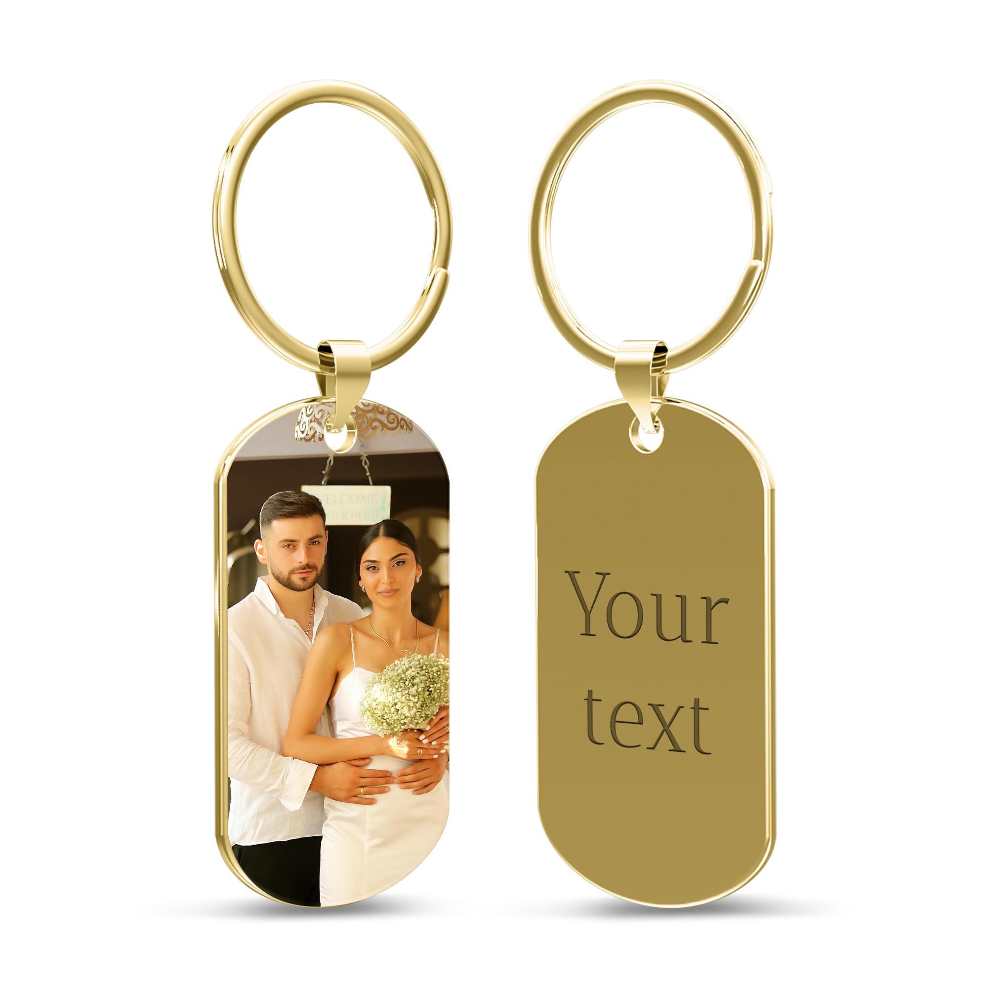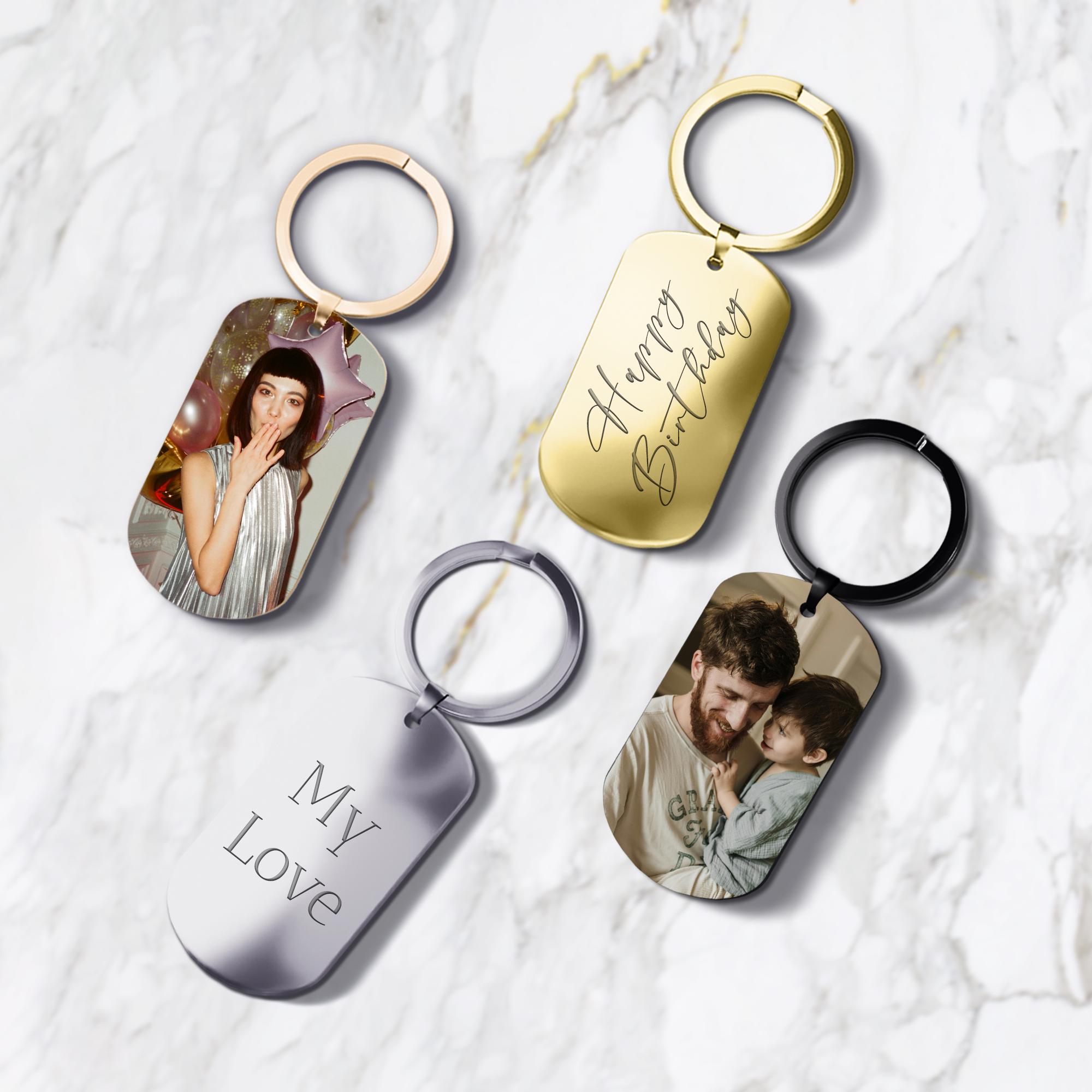 Custom Photo & Engraved Text Keychain – 4 Colours