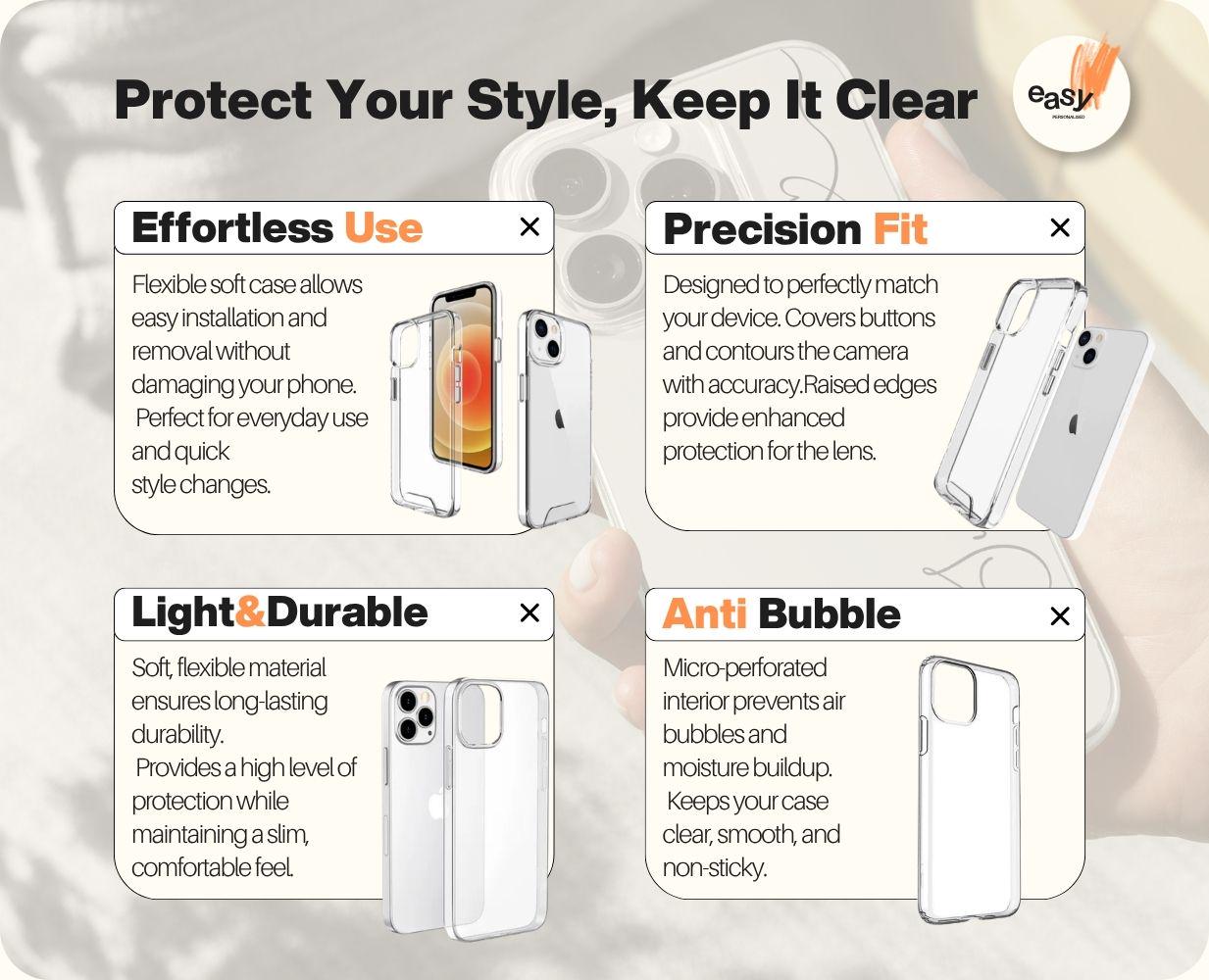 • Transparent clear case